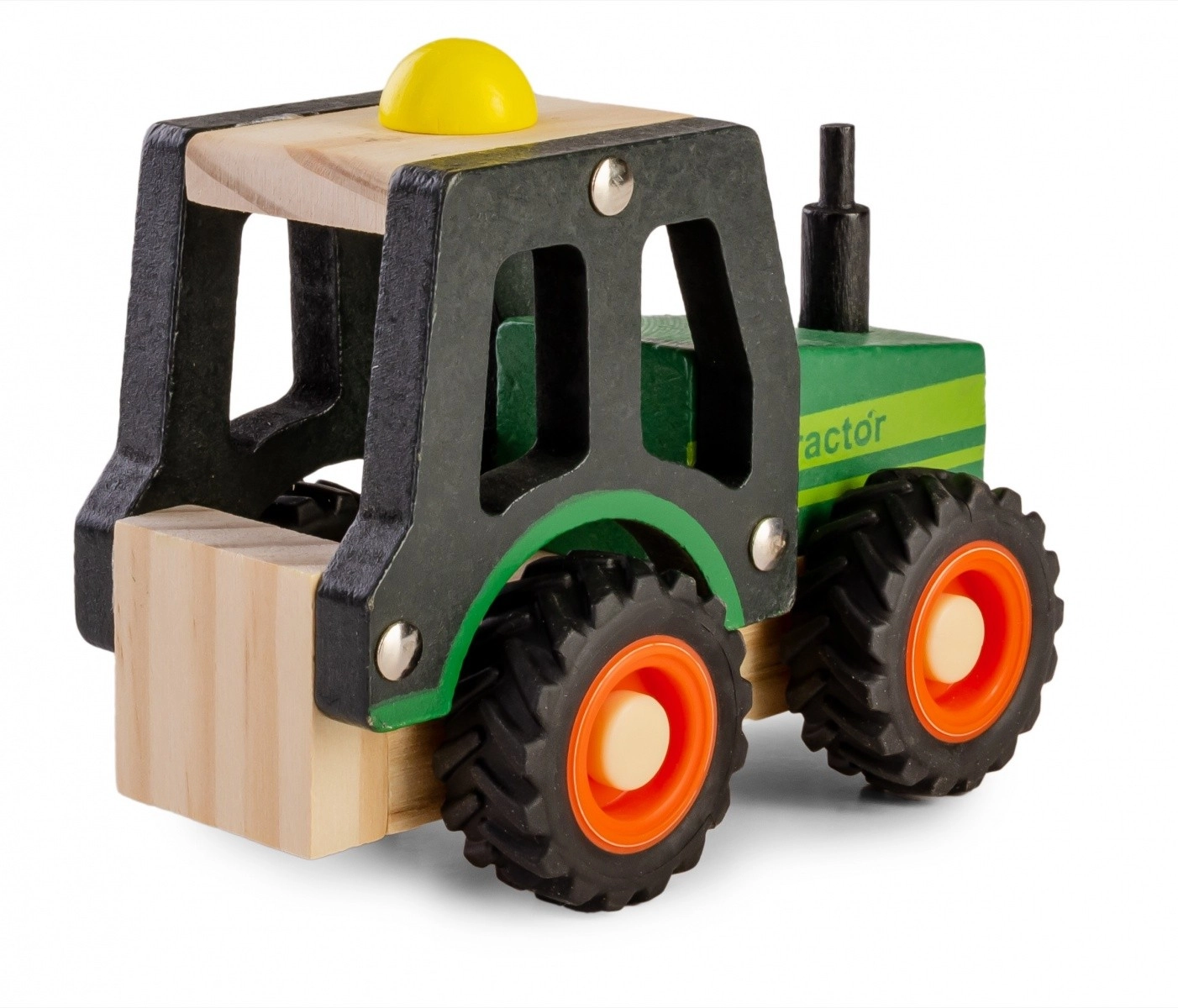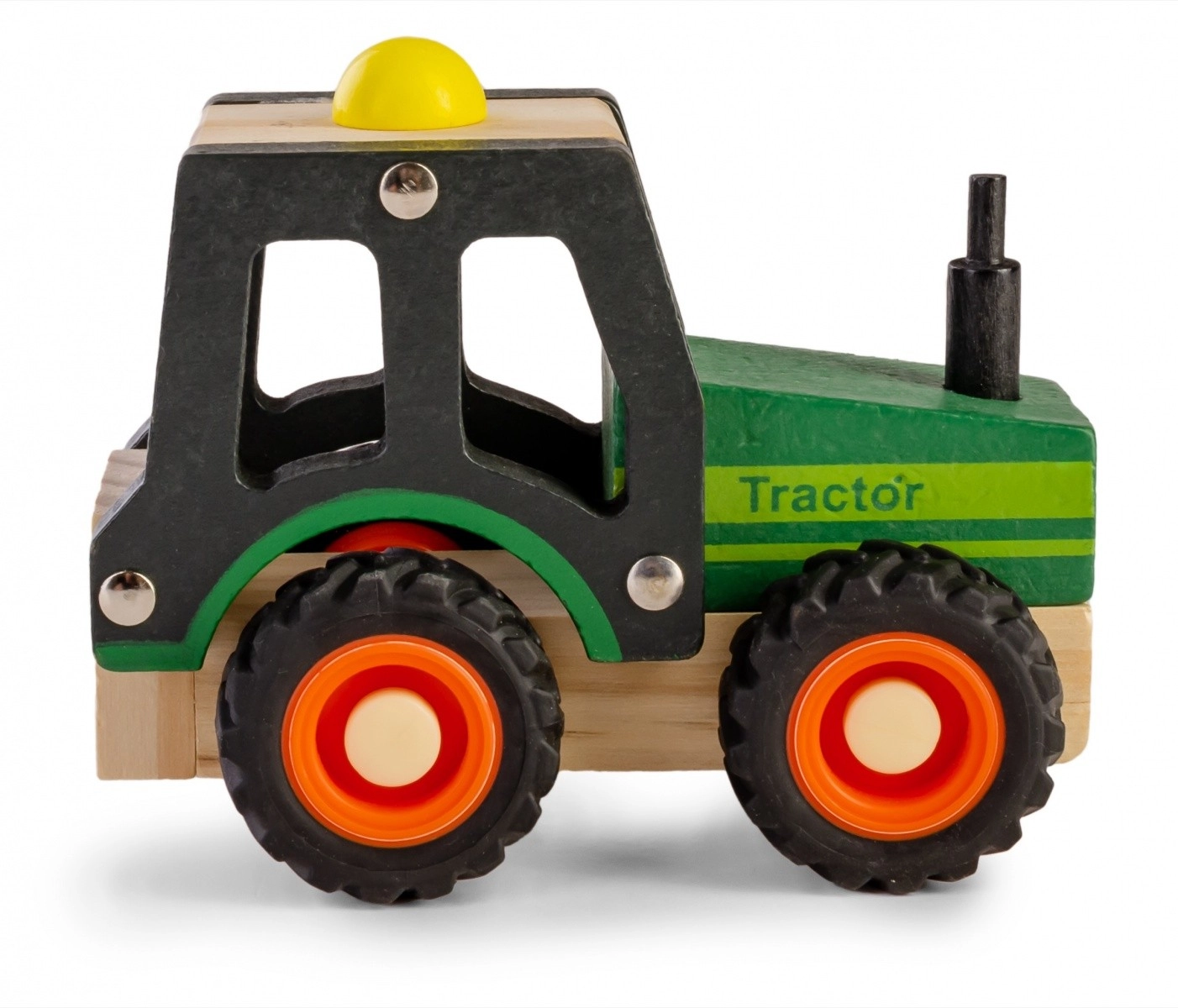 Drveni traktor je izvrstan izbor za prva vozila u dječjoj sobi. Zahvaljujući robusnoj izradi i zaobljenim oblicima siguran je, ugodan na dodir i spreman za svakodnevnu igru. Meke gumirane gume osiguravaju dobro prianjanje i tihi pomak po podu.
