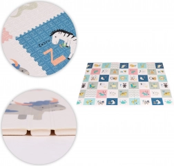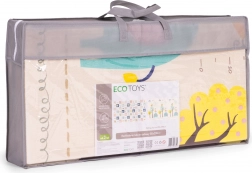 Stvorite djeci siguran kutak za igru, učenje i prve korake. Pjenasta podloga ECOTOYS od meke EVA pjene štiti od hladnoće poda, a zahvaljujući debljini od 0,9 cm upija udarce. Obje strane nude različite motive: šarenu abecedu sa životinjama za rano učenje i prirodni motiv s visinomjerom za radost od svakog dodatnog centimetra.