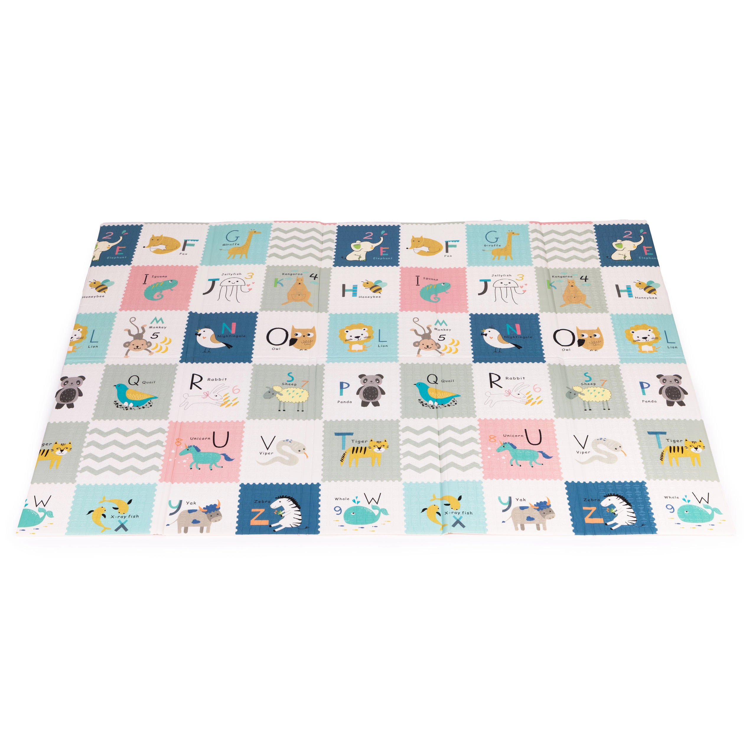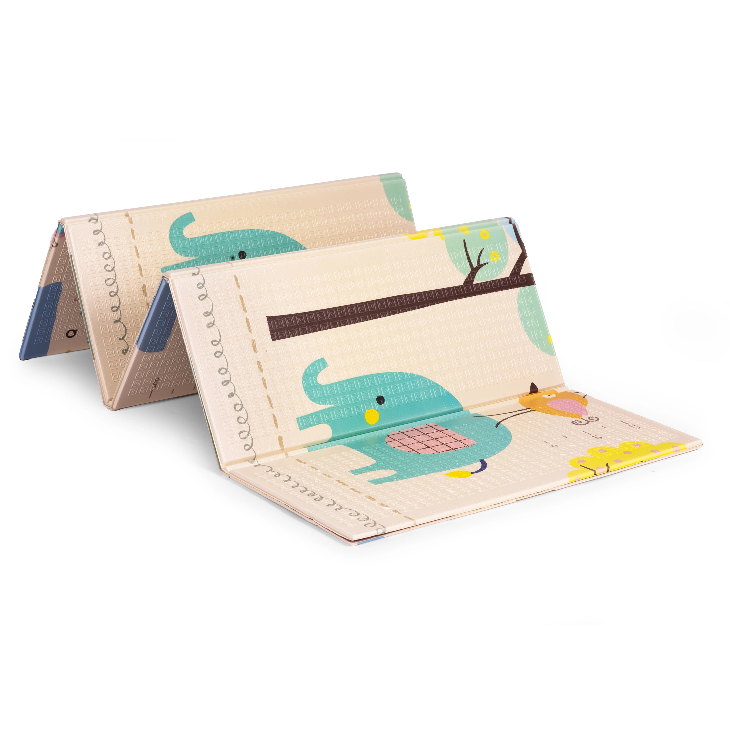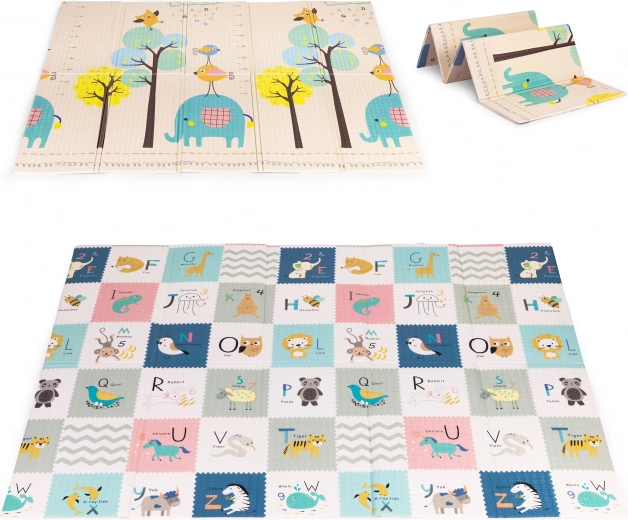 Podloga je sklopiva, lagana i isporučuje se u praktičnoj torbi – idealna za dječju sobu, igraonicu i putovanja kod bake i djeda ili na odmor. Protuklizna tekstura s obje strane osigurava stabilnost pri puzanju i hodu, a površina se lako održava vlažnom krpom.