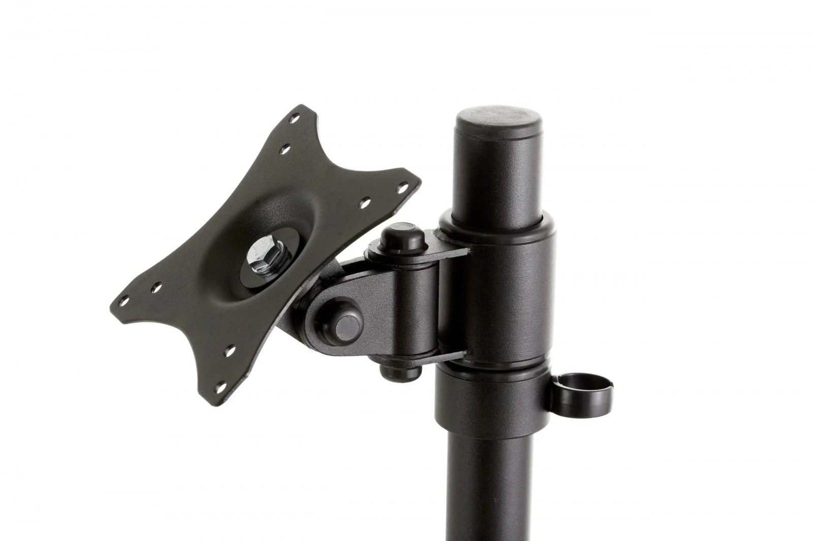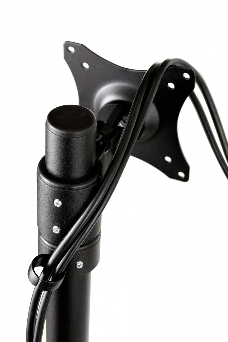 Čvrst metalni stup s VESA prihvatima i vođenjem kabela drži monitore sigurno na mjestu i osigurava uredan izgled radnog mjesta.