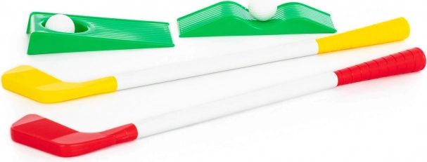 Dječji set sadrži plastične štapove s crvenom i žutom glavom, koji su lagani i lako upravljivi.