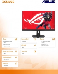 ASUS ROG XG32UCG stvoren je za zahtjevne igrače i kreativce. Velika dijagonala od 31,5'' s finom 4K UHD razlučivošću prikazuje svaki detalj, dok stabilni stalak s podešavanjem visine, nagiba i mogućnošću zakretanja osigurava udobno gledanje cijeli dan. Zahvaljujući tankim okvirima monitor je odličan i za višemonitorske postave.