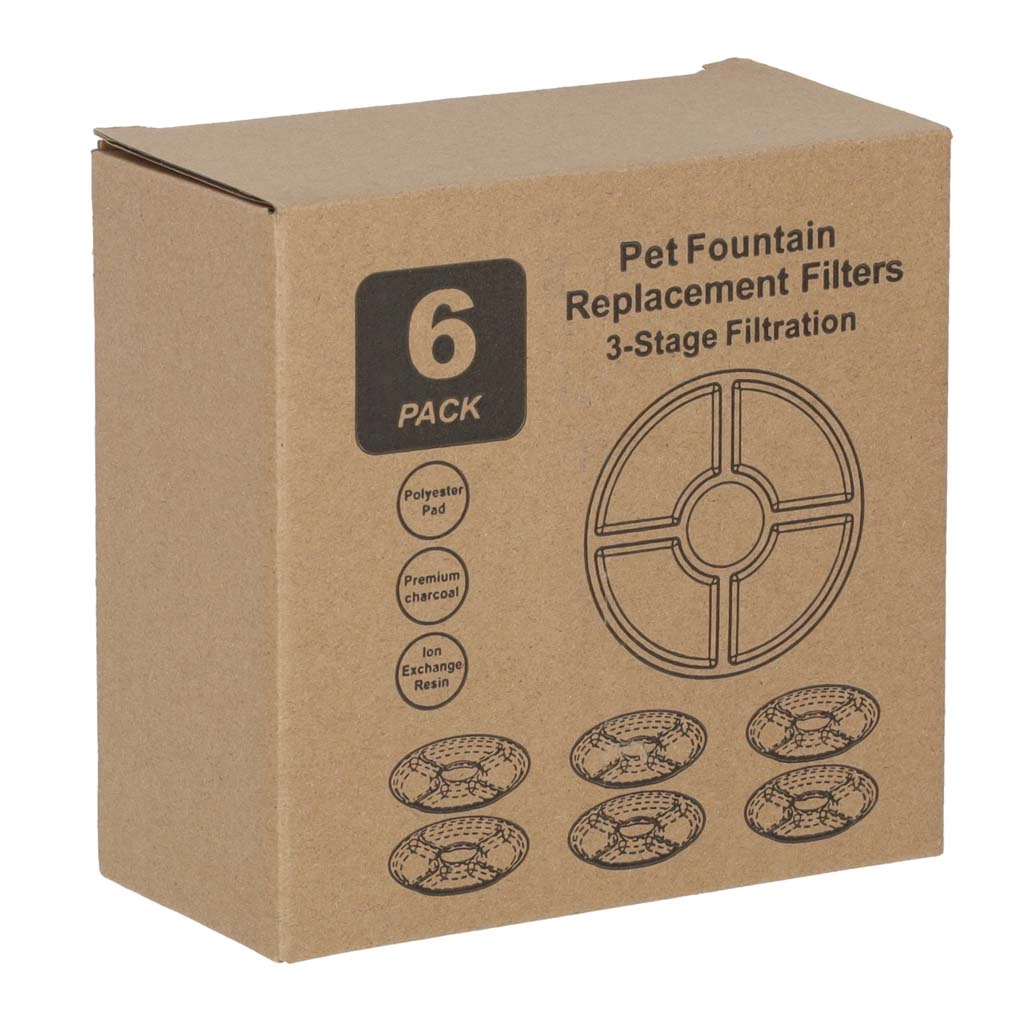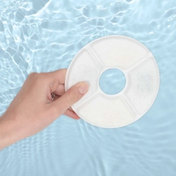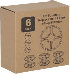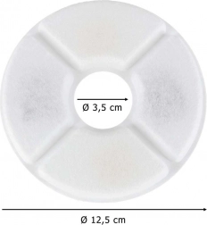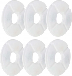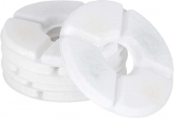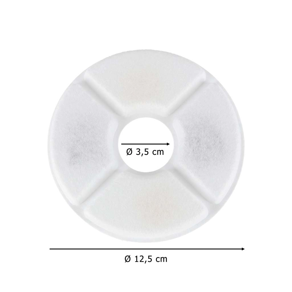 Ovaj set sadrži 6 kružnih filtera dizajniranih za fontane za kućne ljubimce. Zahvaljujući kombinaciji aktivnog ugljena i ionsko-izmjenjivačke smole poboljšavaju okus i kvalitetu vode, smanjuju mirise i zadržavaju fine čestice. Redovita zamjena filtera potiče bolji režim pijenja vašeg ljubimca i pomaže održati fontanu u savršenom stanju.