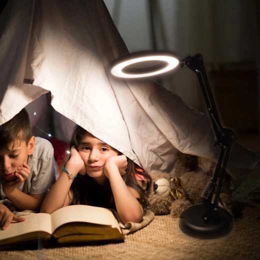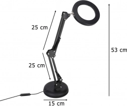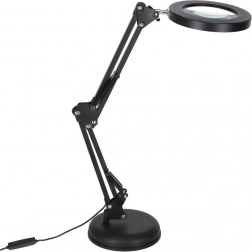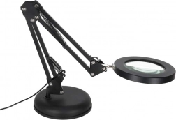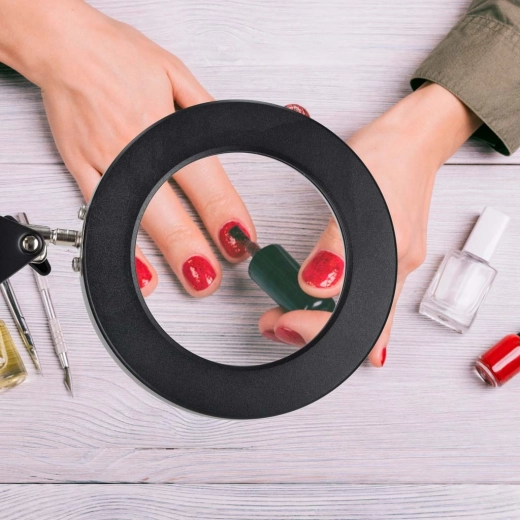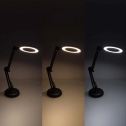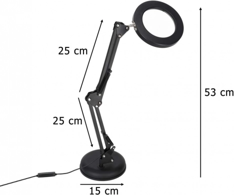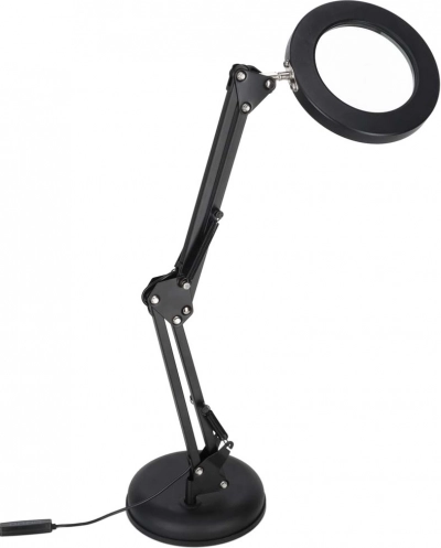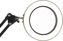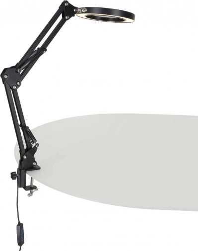 Ova elegantna crna LED lampa kombinira osvjetljenje s lupom x3 u jednom, pa izvrsno služi pri modelarstvu, šivanju, elektronici, rukotvorinama te pri čitanju sitnog tiska. Kružni LED prsten pruža ujednačeno, nezasljepljujuće svjetlo s vjernim prikazom boja (CRI > 80), kako bi detalji bili vidljivi oštro i ugodno.