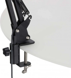 U pakiranju ćete pronaći i stabilnu okruglu bazu i stolnu stezaljku za rub ploče (max. 5 cm). Odaberite rješenje koje odgovara vašem radnom prostoru – na stolu ili uz uštedu mjesta pomoću stezaljke.