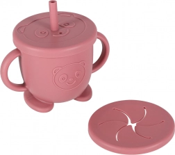 Univerzalna čašica s dva poklopca i slamkom služi kao nepropusna posudica za grickalice i kao šalica sa slamkom. Ergonomske ručkice za lako držanje.