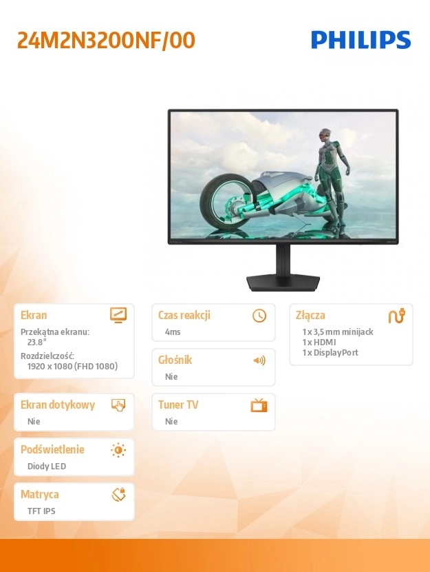 Philips 24" gaming monitor donosi idealnu kombinaciju brzine, kvalitete slike i elegantnog dizajna s tankim okvirima. Zahvaljujući frekvenciji od 144 Hz i brzoj odzivnosti, prikladan je za akcijske igre, e-sport i nesmetan rad. IPS panel jamči precizne boje i stabilnu sliku iz bilo kojeg kuta.