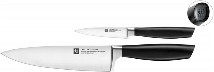 Ovaj stilski crni set od 2 noža ALL STAR idealan je za brzu i preciznu pripremu namirnica. Kratka oštrica od 10 cm savršena je za rezanje voća i povrća, guljenje i finiji rad, dok drugi nož služi kao svestrani pomoćnik u kuhinji.