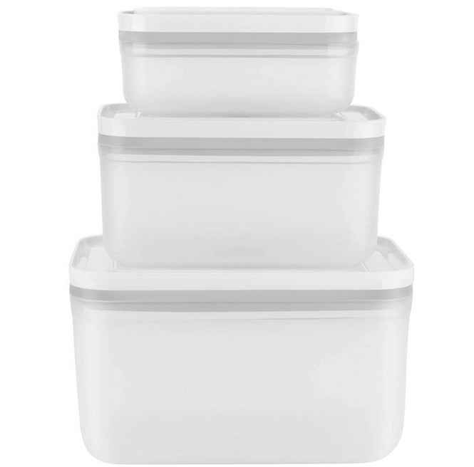Set od tri kompaktne posude Fresh & Save (veličina S) osmišljen je za svakodnevno skladištenje namirnica. Poklopac s centralnim vakuumskim ventilom i brtvenim prstenom minimalizira dotok zraka, čime pomaže produljiti svježinu i smanjiti bacanje hrane.