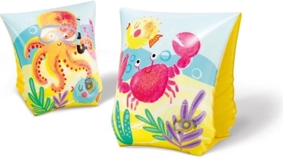 Rukavi imaju razigrane ilustracije meduza, hobotnica i rakova u živim bojama na žutoj pozadini, što djecu potiče na plivanje.