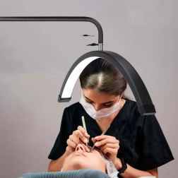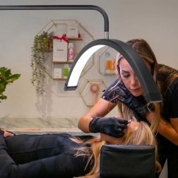 Lučna LED glava (64 cm) ravnomjerno osvjetljava radnu površinu bez oštrih sjena – idealno za detaljan rad na trepavicama, obrvama i noktima.