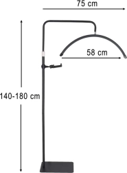 Teška baza, visina 140–180 cm i integrirani držač za telefon za udobno snimanje i dokumentiranje rada u salonu.