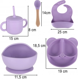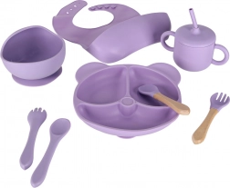 Ovaj 8-dijelni silikonski set osmišljen je za udobno, sigurno i čisto hranjenje te učenje samostalnosti. Vakuumske podloge na zdjelici i tanjuru čvrsto drže posuđe na mjestu, dok dublji rubovi i podjele tanjura olakšavaju zahvaćanje i razdvajanje namirnica. Mekani, izdržljivi silikon nježan je prema dječjim desnima i jednostavan za čišćenje.