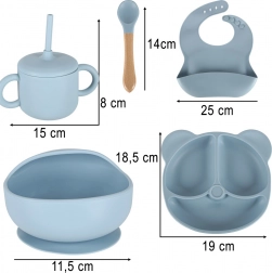 Ovaj kompletan dječji silikonski set za jelo dizajniran je za udobno i sigurno hranjenje te učenje samostalnog jedenja. Zdjela i podijeljeni tanjur s vakuumskom podlogom čvrsto stoje na stolu ili pladnju hranilice, značajno smanjujući nered pri jelu. Mek, izdržljiv i neklizajući silikon ugodan je na dodir i lako se čisti.