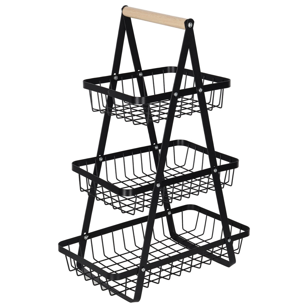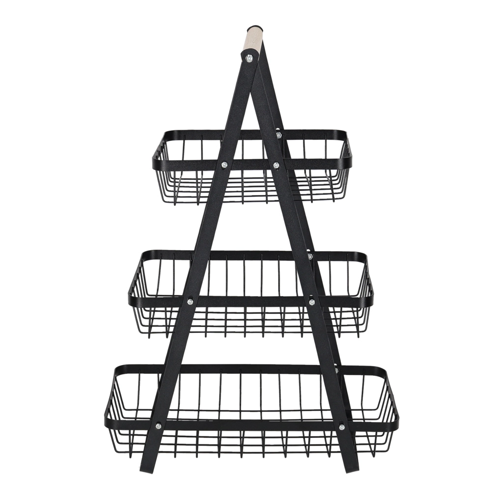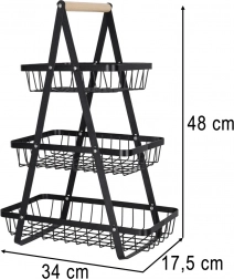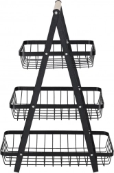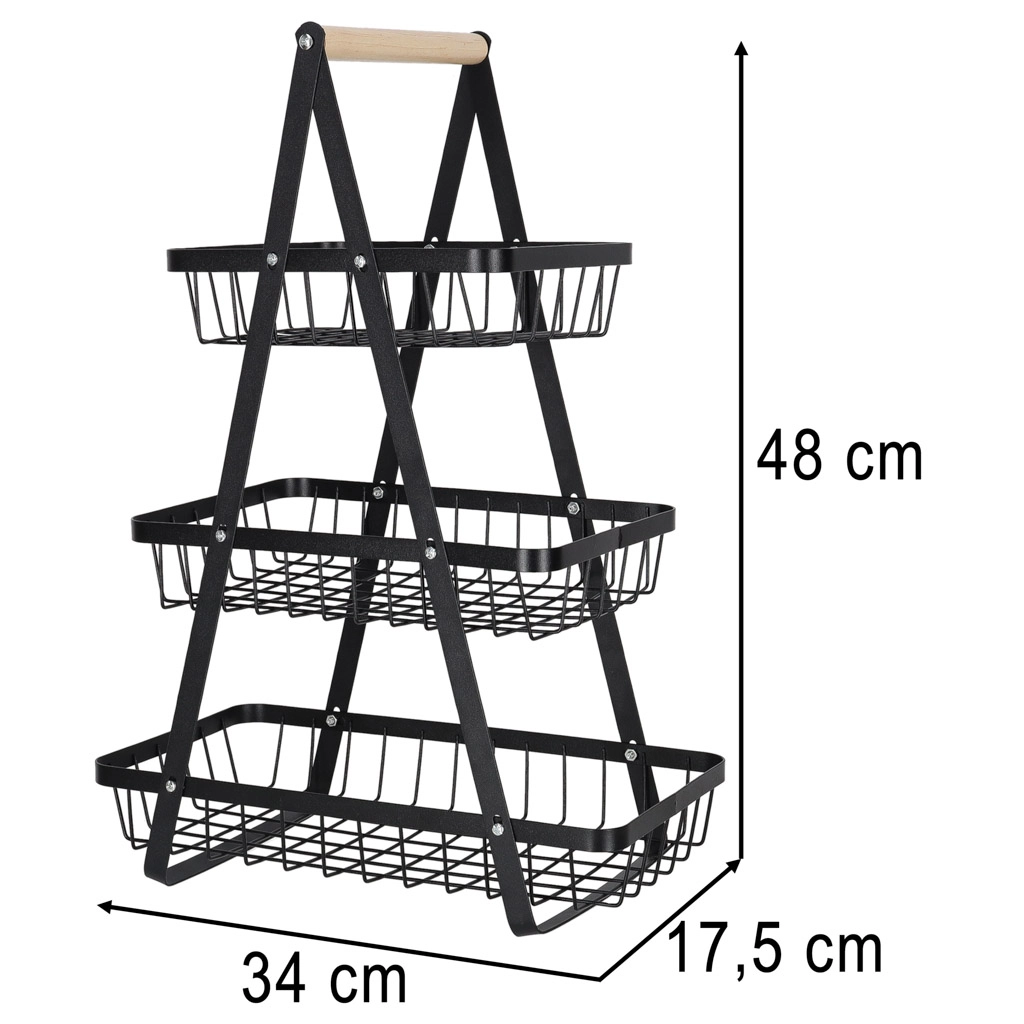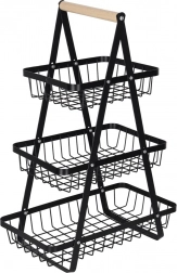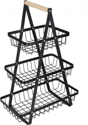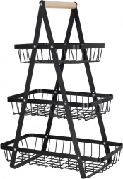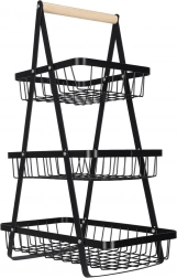 Organizirajte kuhinju, smočnicu ili blagovaonicu elegantnim trokatnim stalkom. Robusna metalna konstrukcija u mat crnoj boji i udobna drvena ručka osiguravaju stabilnost, izdržljivost i lako prenošenje. Zahvaljujući stepenastom rasporedu sadržaj je uvijek na očima i pri ruci.