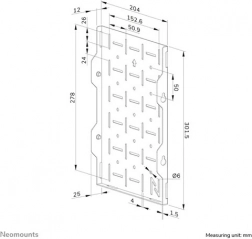 Neomounts AWL05-750BL je pametno proširenje za zidne nosače serije LEVEL-750 koje povećava mogućnosti ugradnje AV dodatne opreme. Perforirana čelična ploča osigurava učinkovito hlađenje priključenih uređaja te pruža varijabilne točke pričvršćivanja za vezice i druge elemente upravljanja kabelima. Meke podloge na stražnjoj strani štite zid od oštećenja.