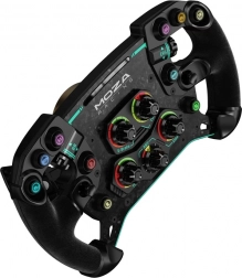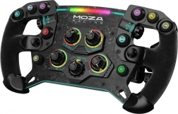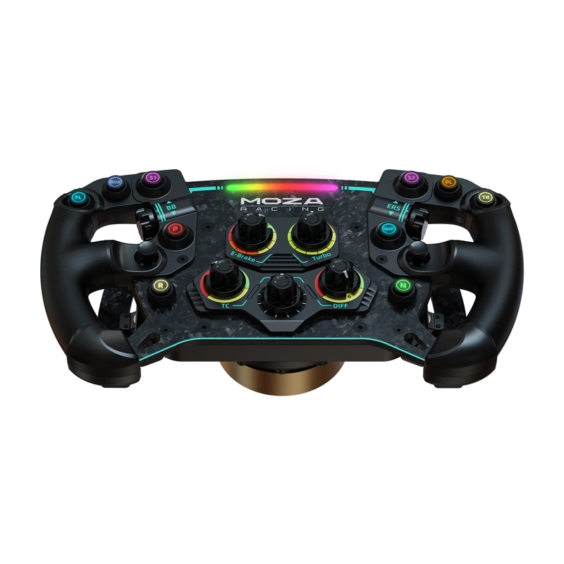 Za maksimalnu kontrolu na raspolaganju su 8 RGB tipki, stražnje 2 programabilne tipke, 3 rotacijska enkodera, 2 kotačića, 7-smjerni prekidač i joystick. Deset LED indikatora okretaja s 16,7 mil. boja može se konfigurirati u MOZA Pit Houseu, kao i cjelokupno UI zaslona. Brzi aluminijski quick-release omogućuje munjevitu izmjenu volanskih vijenaca, a bežična i žičana veza osigurava punu kompatibilnost s MOZA bazama te, zahvaljujući univerzalnom adapteru, i podršku trećih strana.