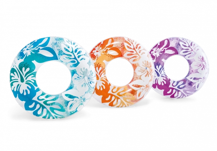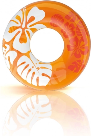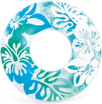 Nafukivači prsten INTEX 91 cm s havajskim cvjetnim motivom. Izdržljiv, udoban i idealan za djecu od 9 godina za bazen i more.