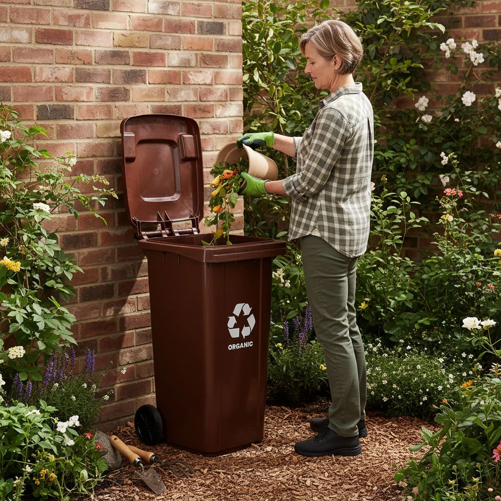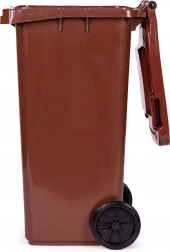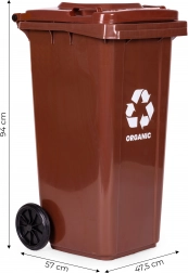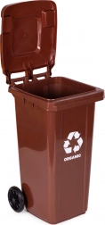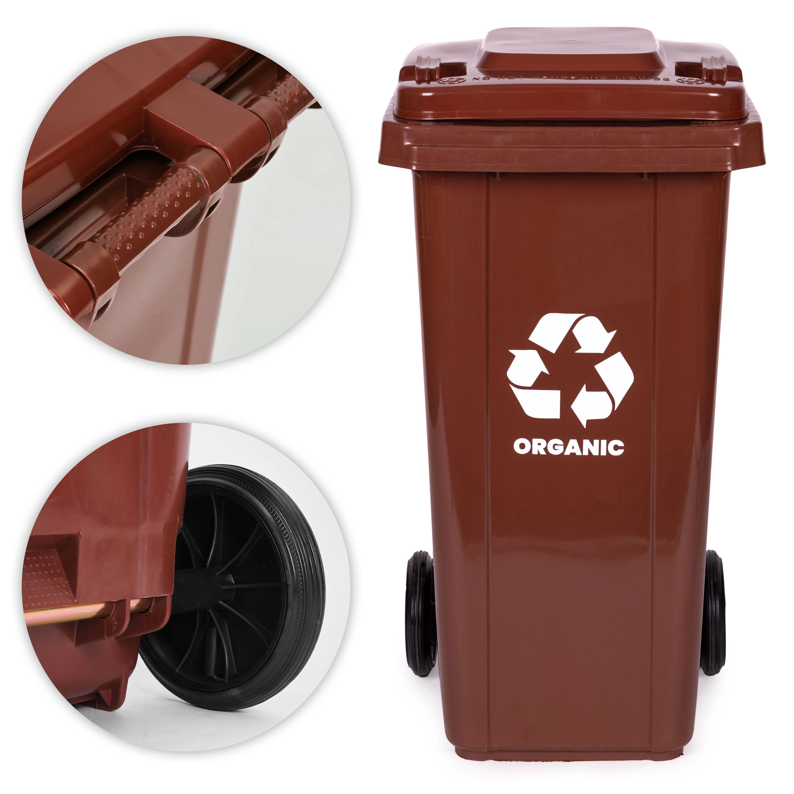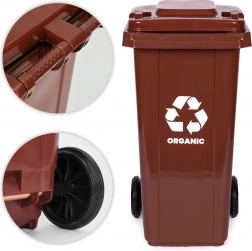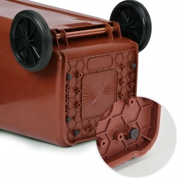 Ovaj 120-litarski koš za biootpad izrađen je od kvalitetnog HDPE-a koji je UV stabilan i otporan na kemikalije i udarce. Tijesni poklopac sprječava prodor vode i širenje mirisa, zbog čega je koš pogodan za cjelogodišnju vanjsku upotrebu. Konstrukcija ispunjava normu EN-840 i kompatibilna je s komunalnim vozilima za odvoz otpada.