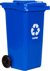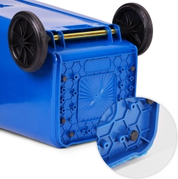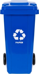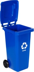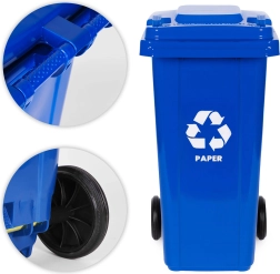 Robusna 120-litrena kanta za papir od vrhunskog HDPE-a odolijeva UV zračenju, kemikalijama i mehaničkim oštećenjima. Čvrst poklopac sprječava prodor kiše i širenje mirisa, pa je pogodna za vanjsku i unutarnju upotrebu. Gumeni kotači na metalnoj osovini i protuklizne ručke osiguravaju jednostavno premještanje i pri punom opterećenju.