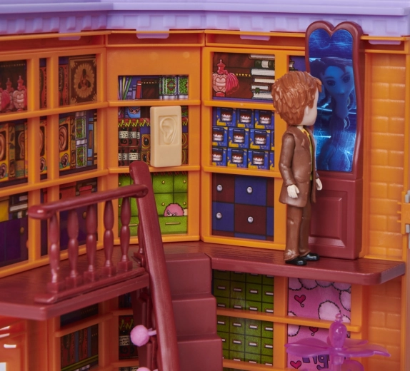 Zahvaljujući svjetlosnim i zvučnim efektima te širokom rasponu dodataka – od šaljivih rekvizita preko sova do pulta za sladoled – djeca će uživati u satima zabave. Set je idealan kao poklon za male čarobnjake i vještice koji vole kreativno slaganje i igru uloga.