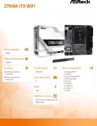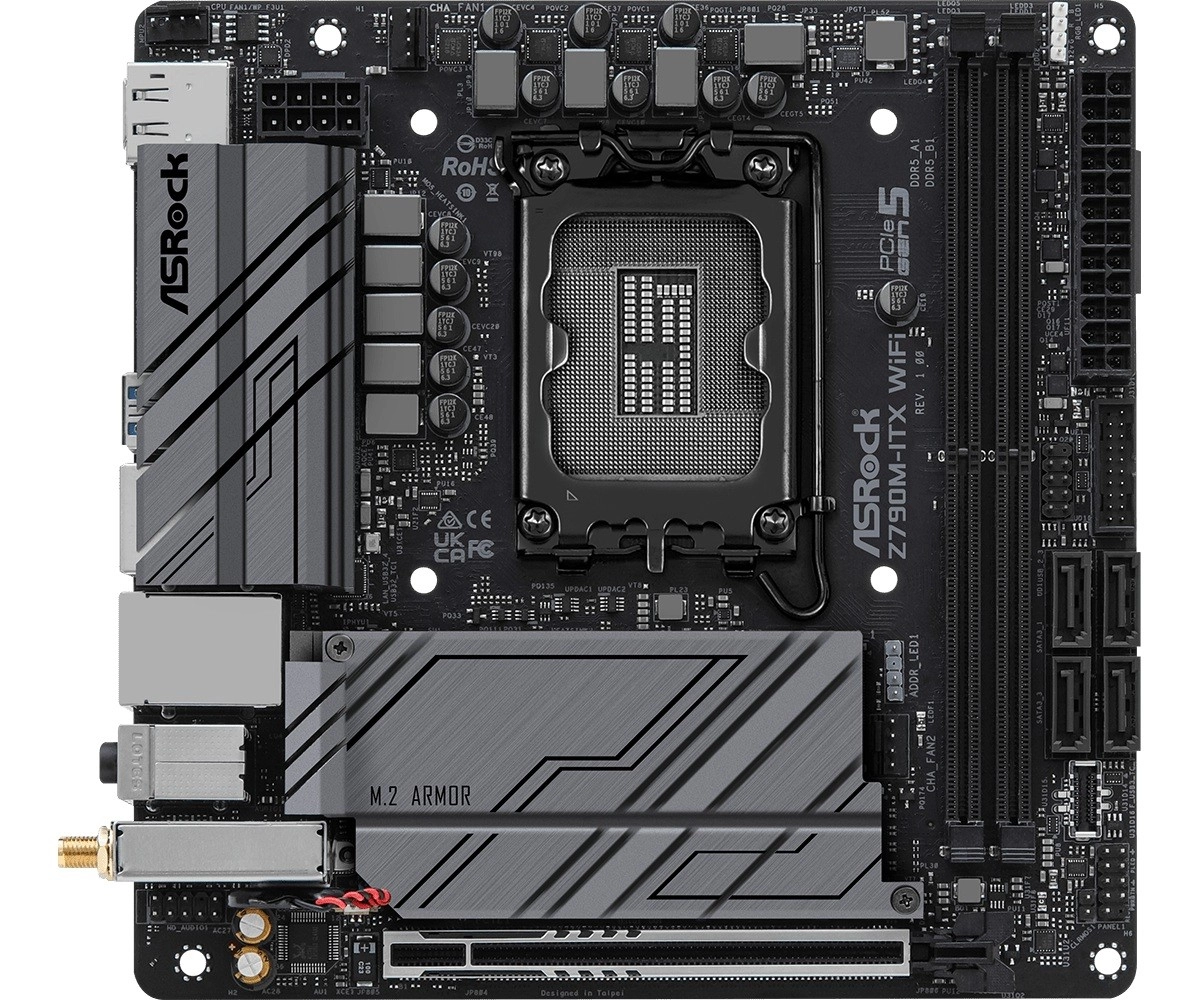 ASROCK Z790M‑ITX WiFi odličan je izbor za snažna, a prostorno štedljiva računala. Nudi 7+1+1 fazno napajanje s Dr.MOS za stabilan rad Intel Core procesora do 14. generacije, dva DDR5 utora s podrškom za visoke frekvencije te punokrvni PCIe 5.0 x16 utor za najnovije grafičke kartice.