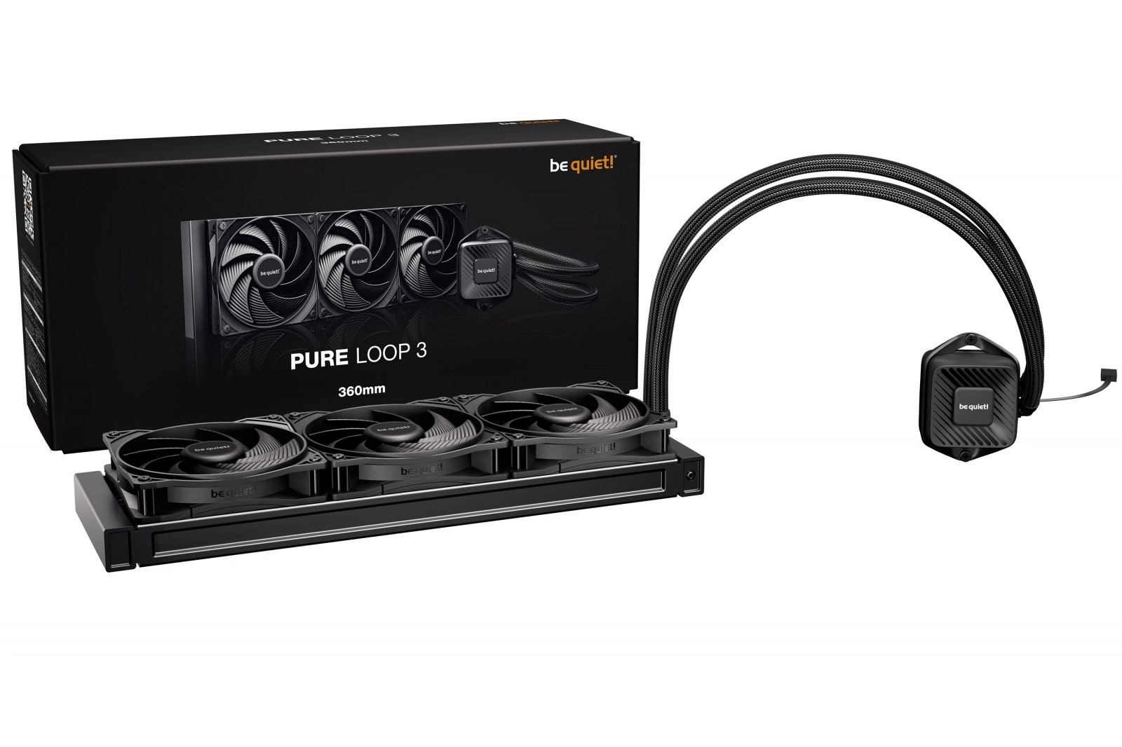 Be quiet! Pure Loop 3 360 mm je visokoučinkovito i iznimno tiho all‑in‑one vodeno hlađenje za moderne i overclockane konfiguracije. Nudi visok kapacitet hlađenja za sve potrošačke procesore, PWM pumpu sa 6‑polnim motorom za minimalne vibracije te tri 120 mm ventilatora Pure Wings 3 s visokim statičkim tlakom i niskom bukom. Oduševit će i serijsko povezivanje ventilatora, jednostavna instalacija s fleksibilnim crijevima te elegantan minimalistički dizajn.