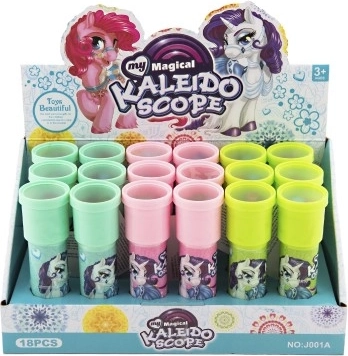 Kaleidoskop, odnosno krasohled, bezvremenska je igračka koja pri pogledu prema svjetlu uz pomoć sustava zrcala i šarenih zrnaca stvara jedinstvene i neprestano promjenjive uzorke. Motiv jednoroga razveselit će sve male sanjare i ljubitelje čarobnih svjetova.