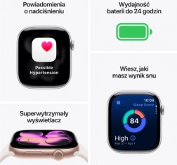 Sigurnost i praktičnost. Značajke SOS, Detekcija pada i Detekcija prometne nesreće mogu automatski pozvati pomoć i podijeliti lokaciju. Apple Pay omogućuje brza plaćanja, pametni stog nudi relevantne informacije u pravo vrijeme, a precizno pronalaženje iPhonea pouzdano vas vodi do uređaja. Vodootpornost WR 50M i otpornost na prašinu IP6X brinu za bezbrižno korištenje i u zahtjevnim uvjetima.