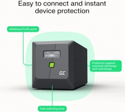 Osigurajte kontinuitet rada i zabave. UPS GREEN CELL 850 VA/480 W s modificiranim sinusnim valom pouzdano održava rad osjetljivih uređaja tijekom prekida napajanja i štiti ih od štetnih naponskih vršaka. Pregledan LCD zaslon prikazuje ključne parametre, a smanjena svjetlina osigurava ugodnu čitljivost.