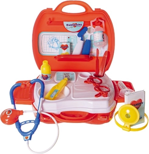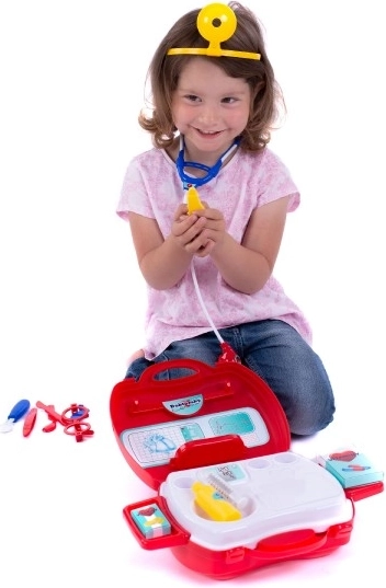 Zabavni doktor set za male liječnike u praktičnom koferčiću nudi sve potrebno za igru doktora. Potiče maštu, igre uloga i finu motoriku djece. Zahvaljujući laganim plastičnim alatima, kao što su stetoskop, toplomjer i injekcija, djeca se mogu sigurno okušati u pregledima i brizi za pacijente.