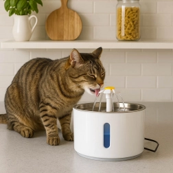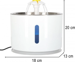 Automatska pojilica za pse i mačke osigurava neprekidnu cirkulaciju vode koja je zahvaljujući protoku hladnija, čišća i potiče životinje na češće pijenje. Gornji dio od nehrđajućeg čelika je higijenski i lako se čisti, a prozor s plavim LED osvjetljenjem prikazuje trenutačnu razinu.
