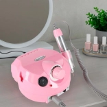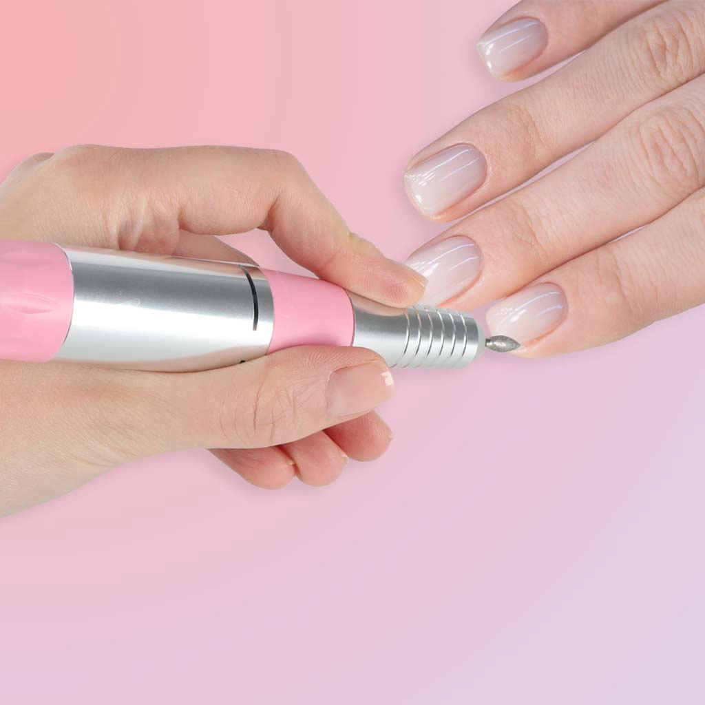 Kompaktna električna brusilica za nokte snage 15 W s kontinuiranom regulacijom do 35 000 o/min nudi preciznu manikuru i pedikuru kod kuće i u salonu. Upravljanje je udobno zahvaljujući promjeni smjera okretanja, izboru načina rada HAND/FOOT i nožnom pedalu. U pakiranju je 6 metalnih freza, 6 brusnih nastavaka, stalak i držač za ručku za sigurno odlaganje.