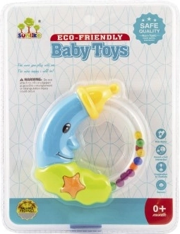 Sigurna plastična izvedba je lagana, izdržljiva i jednostavna za održavanje čistoće. Zvečkica je dostupna u dvije varijante boja koje privlače bebinu pažnju i stimuliraju njezin osjetilni razvoj.