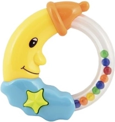 Šarmantna zvečkica u obliku mjeseca razveselit će svaku bebu već od rođenja. Zahvaljujući laganoj plastičnoj konstrukciji lako se drži i pri pokretu ispušta ugodne zvukove koji potiču percepciju i umiruju. Lagani plast, ugodan zvuk, dvije varijante boja, prikladno od 0 mjeseci.