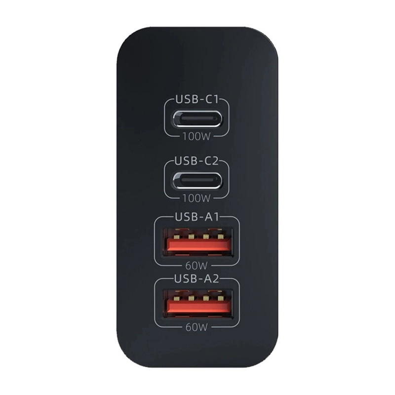 - 2 × USB-C (do 100 W), 2 × USB-A (do 60 W)