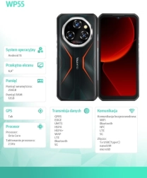 OUKITEL WP55 5G je izdržljiv pametni telefon za ekstremne uvjete s certifikatima IP68/IP69K i MIL‑STD‑810H. Nudi 6,6" IPS zaslon 120 Hz, snagu čipseta MediaTek Dimensity 7025, 12 GB RAM‑a i pohranu 256 GB s mogućnošću proširenja do 2 TB. Ogromna baterija 11 000 mAh s 33W brzim i obrnutim punjenjem, 108 MP trostruka kamera, 5G, NFC i Android 15 čine WP55 izvrsnim izborom za posao i avanture.