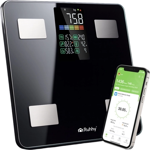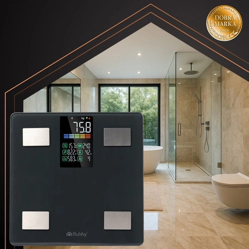 Pametna kupaonska vaga RUHHY nudi precizno mjerenje težine do 226 kg i zahvaljujući tehnologiji BIA provodi naprednu analizu sastava tijela. Nakon uparivanja s aplikacijom Feelfit na telefonu vidjet ćete BMI, postotak masti, vodu u tijelu, mišićnu i koštanu masu, visceralnu mast i druge pokazatelje, pregledno u grafovima. Moderni LCD zaslon, automatsko uključivanje/isključivanje i izdržljivo kaljeno staklo čine je odličnim izborom za dom i teretanu.