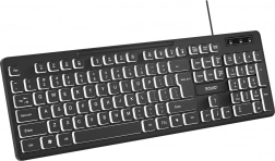 Minimalističko, tanko kućište lako stane pod monitor ili na izvlačnu policu stola. Kabel duljine 1,4 m olakšava uredno vođenje kabela i red na radnom mjestu. LED pozadinsko osvjetljenje poboljšava čitljivost tipki pri sumraku i smanjuje tipfelere.