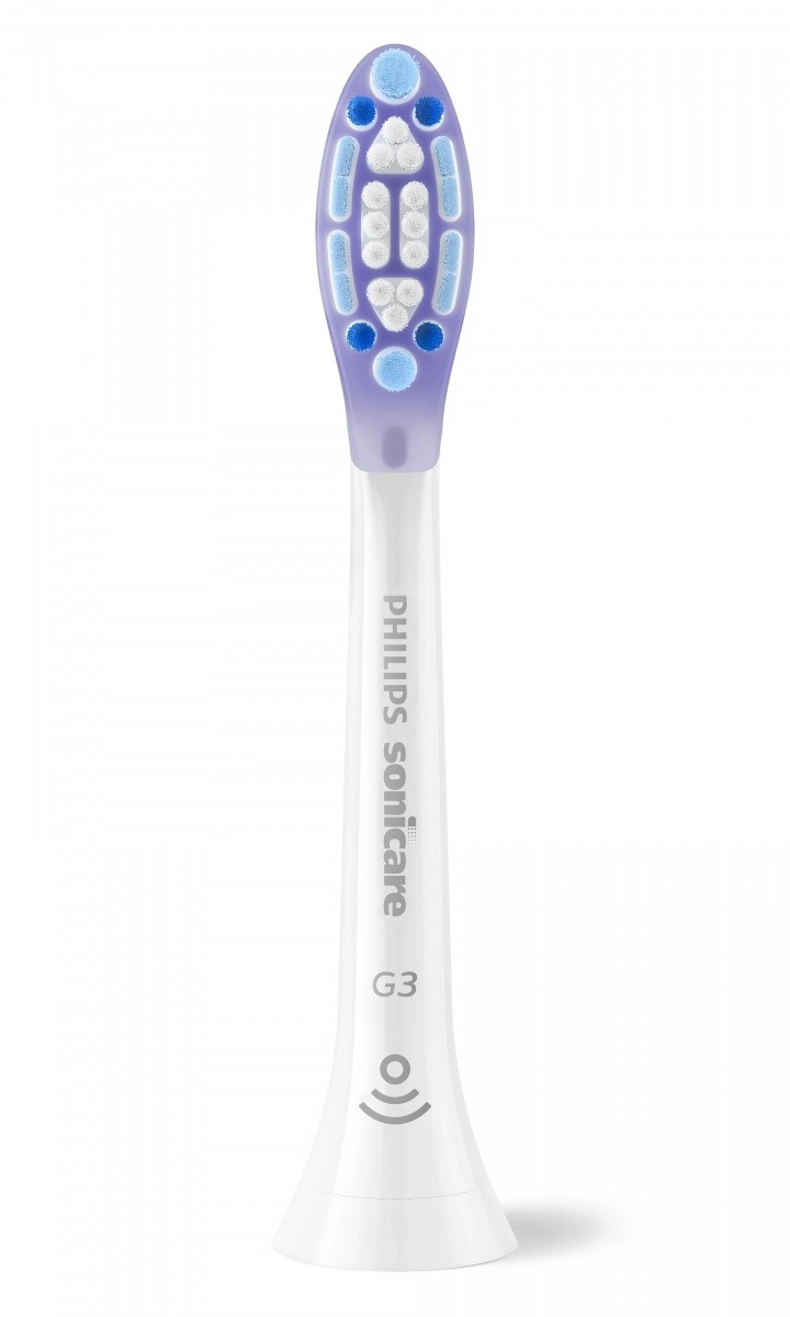 Glave PHILIPS Sonicare G3 Premium Gum Care dizajnirane su za osjetljivu liniju desni i vrhunsko svakodnevno čišćenje. Konkavni oblik polja čekinja povećava kontakt s desnima, dok višerazinska, nježna vlakna učinkovito dopiru u međuzubne prostore i duž ruba desni. Sonična tehnologija s dinamičnim protokom tekućine pomaže čistiti i tamo gdje vlakna ne dopiru.