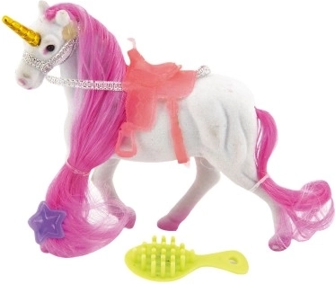 Ovaj elegantni jednorog razveselit će svako dijete koje voli čarobna stvorenja i svijet mašte. Zahvaljujući mekoj, baršunastoj površini i grivi za češljanje mali frizeri uživat će u mnoštvu kreativne zabave. U kompletu su i dodaci za uređivanje grive te sedlo za udobne vožnje u zamišljenom svijetu.