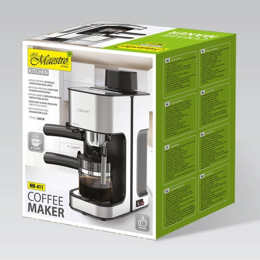Ručni aparat za kavu Maestro idealan je izbor za sve ljubitelje kave koji žele kvalitetan espresso, cappuccino ili latte kod kuće bez kompliciranog rukovanja. Priprema napitke od mljevene kave, pa možete odabrati točnu mješavinu i intenzitet koji volite. Zahvaljujući parnoj mlaznici lako ćete napraviti finu mliječnu pjenu, a grijana površina za šalice osigurava da kava dulje ostane vruća.