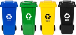 Set 4 robusna kontejnera od 120 l u bojama plava, zelena, žuta i crna olakšava svakodnevno odvajanje otpada kod kuće, u tvrtki i u javnim prostorima. Izdržljiv HDPE štiti od UV zračenja, kemikalija i mehaničkih oštećenja, dok tijesni poklopac sprječava prodor vode i širenje mirisa.