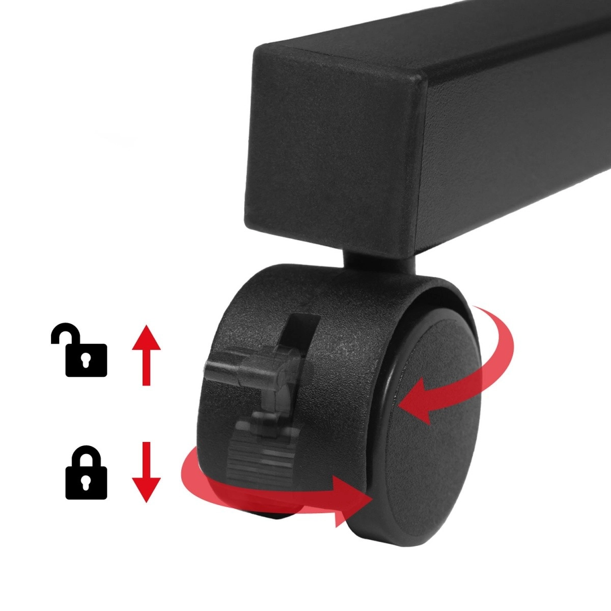 Stol lako premjestite po prostoriji, a zatim osigurajte kočnicama. Bočna polica 24 × 40 cm savršena je za PC kućište ili pisač.
