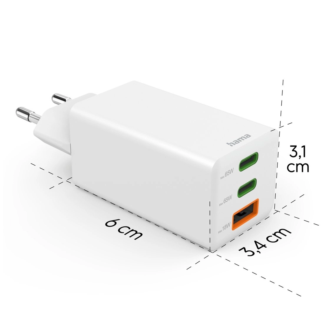 Iskoristite modernu GaN tehnologiju u kompaktnom kućištu koje štedi prostor u utičnici i torbi. Punjač Hama pruža do 65 W za brzo i učinkovito punjenje širokog spektra uređaja – od pametnih telefona i slušalica preko tableta do odabranih prijenosnih računala. Zahvaljujući podršci za USB Power Delivery i Qualcomm Quick Charge dobivate maksimalnu brzinu na kompatibilnim uređajima.