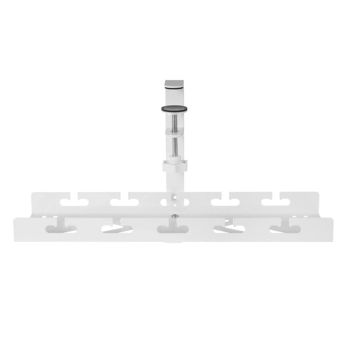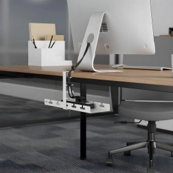 Održavajte svoj radni stol urednim s ovim podstolnim organizatorom kabela. Zahvaljujući steznom sustavu bez bušenja lako ga pričvrstite na rub ploče, smjestite produžni razdjelnik i snopove kabela te sve budete imali sigurno i estetski skriveno. Metalna konstrukcija s površinskom obradom osigurava stabilnost i izdržljivost, a praktični prorezi omogućuju jednostavno vođenje instalacije bez nereda.