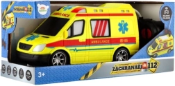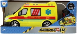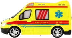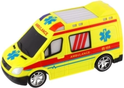 Upadljivo žuto vozilo hitne pomoći s oznakama AMBULANCE i funkcionalnim svjetlom potiče kreativnu igru najmlađih.