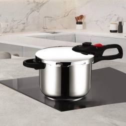 Ovaj ekspres lonac idealan je pomoćnik za brzu pripremu juha, variva i mesa. Zahvaljujući zapremini od 6 litara lako ćete skuhati porcije za cijelu obitelj. Kvalitetni nehrđajući čelik osigurava dugotrajnost, jednostavno čišćenje i postojan izgled.