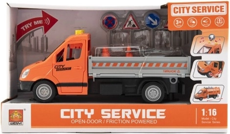 Pobrinite se za red u gradu s detaljnim cestovnim servisnim vozilom. Zahvaljujući inercijskom pogonu vozilo kreće nakon guranja, svjetlosni i zvučni efekti pojačavaju dojam prave cestarske službe, a priloženi znakovi, čunjevi i pomagala proširuju mogućnosti igre.