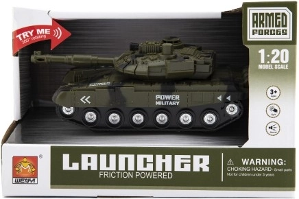 Tenk je izrađen od izdržljive plastike i spreman je za uporabu odmah nakon raspakiravanja – 3× AG13 baterije su u pakiranju. Igračka je prikladna za djecu od 3 godine, a zahvaljujući kompaktnoj veličini 20 cm pogodna je i za kućne bitke i za putovanja.